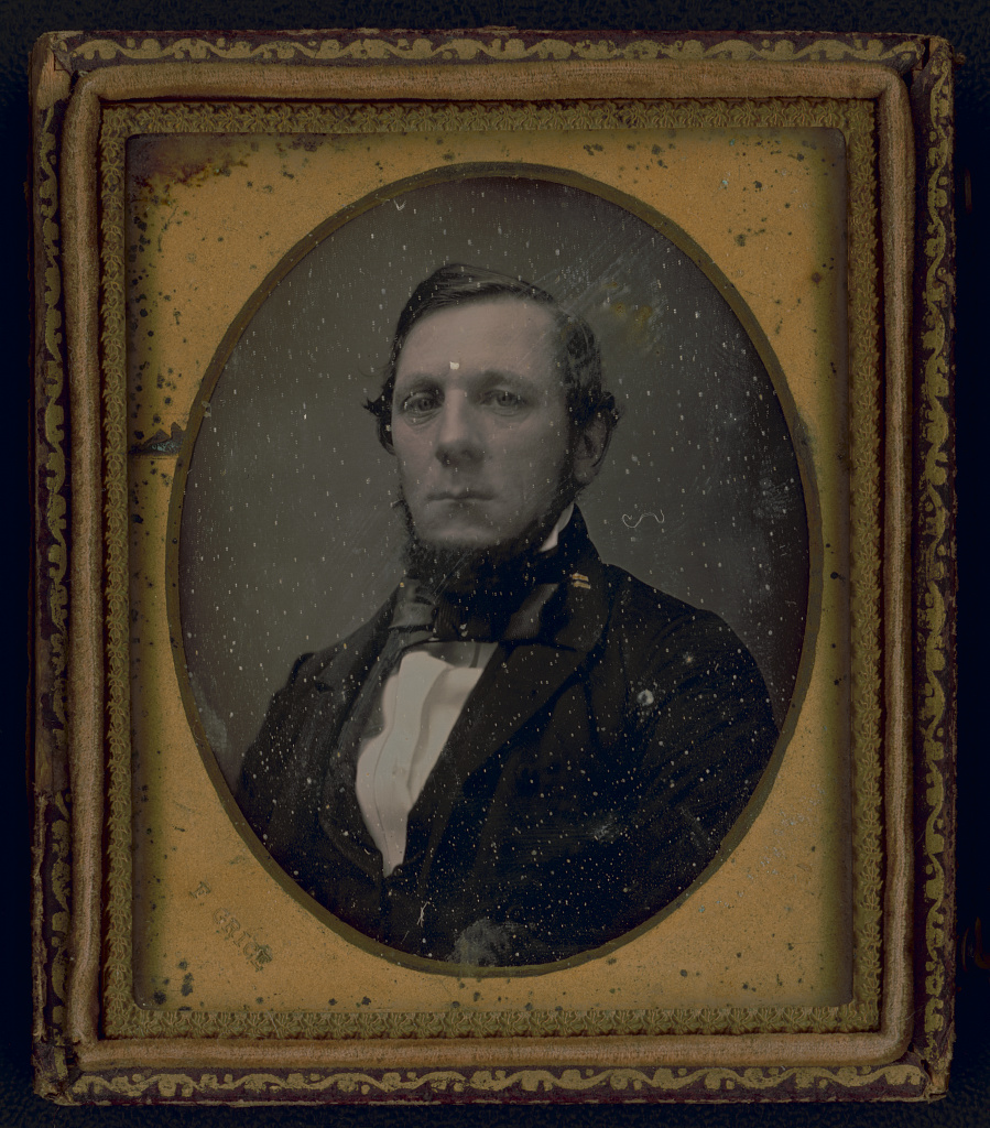 This Dageurreotype of Rich probably was made 1850-1855, based on apparent age and dress. It has not been flipped horizontally. He was “scalped” either by faulty development or subsequent damage. The Grice image is the most flattering. Charles Coulson Rich – Biography (josephsmithpapers.org)