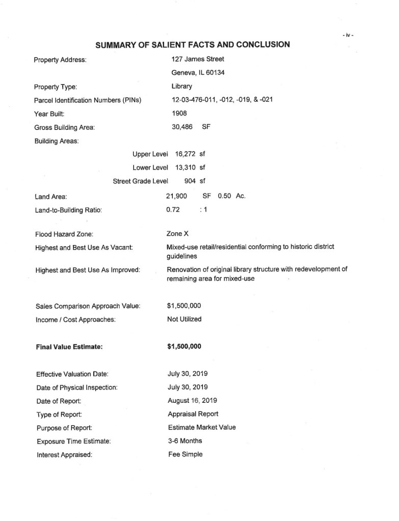 The Last (August 2019) Certified MAI Appraisal of the 127 James Street Old Library Property was $1,500,000